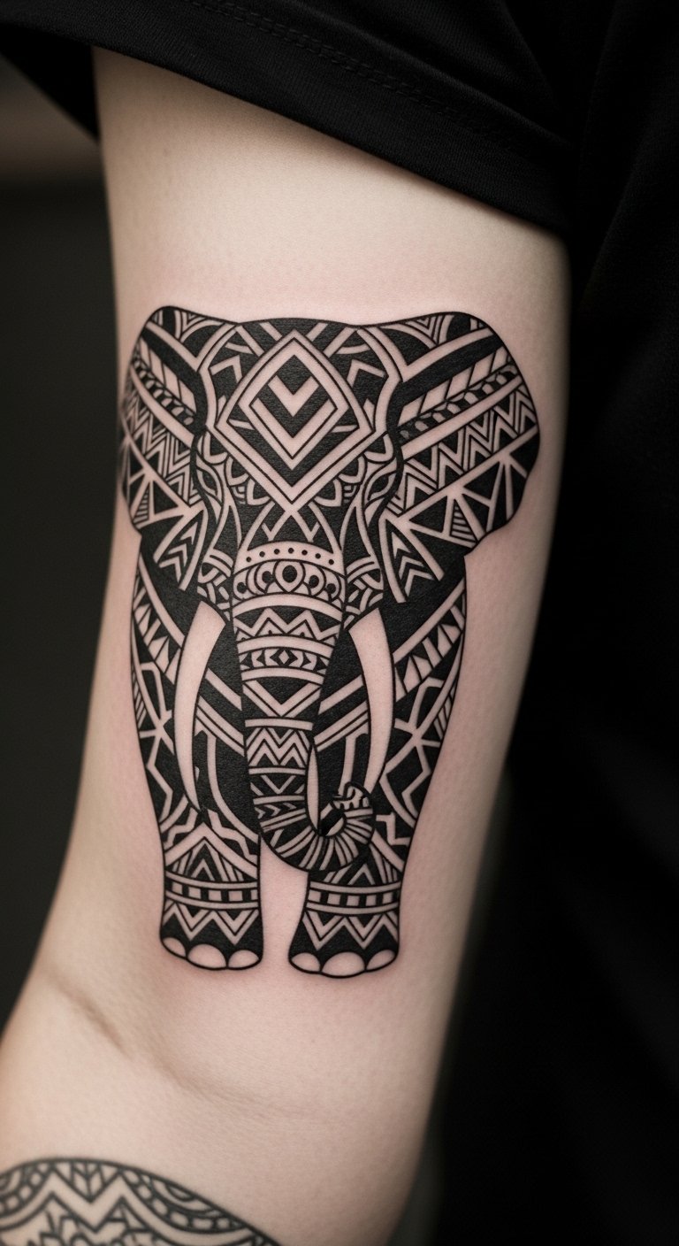 Tribal elephants add cultural edge to your arm. They use geometric shapes for a strong look. Practice drawing patterns on paper as a DIY base. It guides your choices. Budget options include community studios at 2-4 million VND. Put it on the outer arm for visibility. Combine with dots for added meaning. This tattoo nods to heritage and strength. Opt for one-color work to cut time. Bring your sketches to speed things up. It’s straightforward and cost-effective. Cover with sleeves if needed. Start small to build confidence.