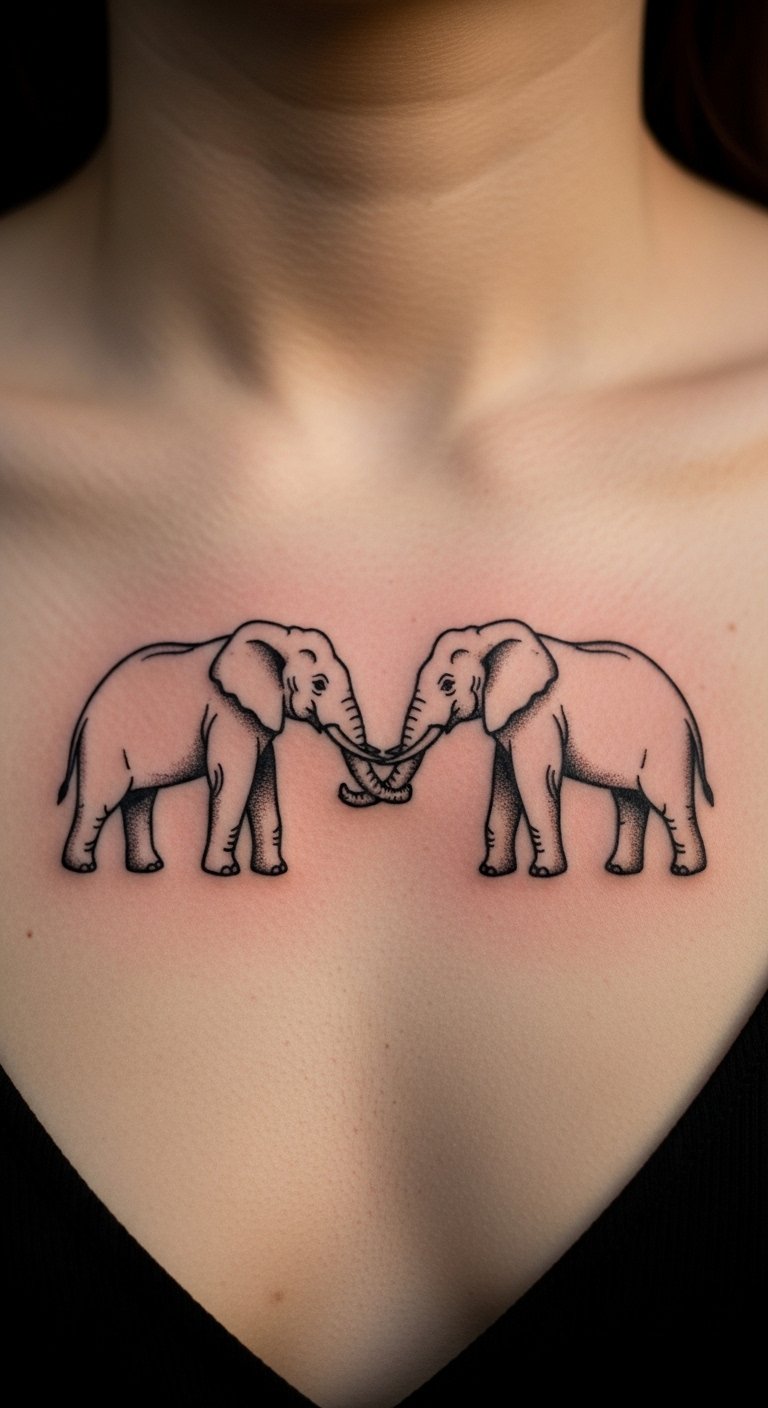 Show unity with elephants holding trunks on your chest. It’s a heartfelt symbol of love. Sketch paired figures at home for DIY prep. This step clarifies your vision. Find deals on duo designs for under 3 million VND. Place it over the heart for impact. Add minimal details for personalization. This style speaks to family and bonds. Sessions run smooth with clear plans. Use your drawings to communicate. It saves money and effort. Test with temporary ink first. Keep it real and affordable.