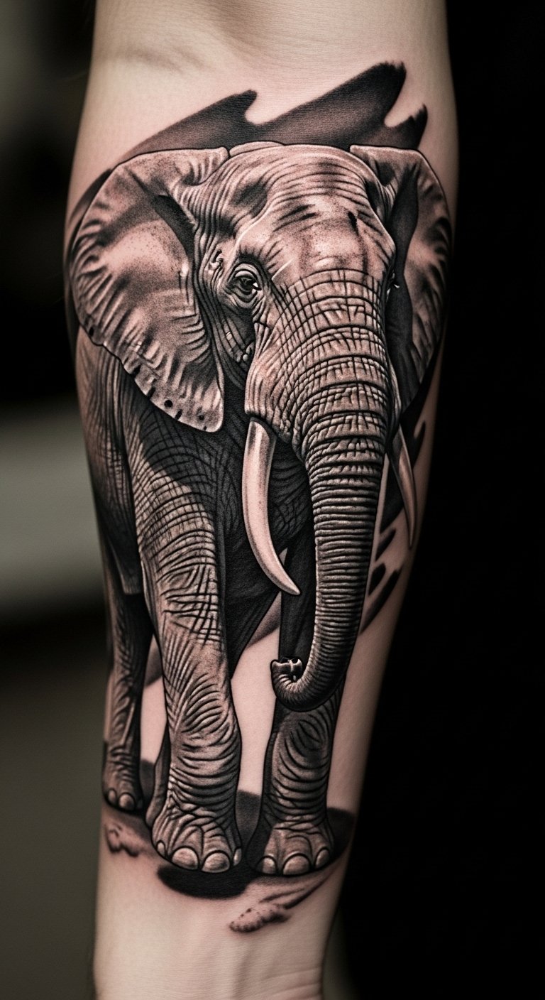 3D elephants on your forearm create a popping effect. They add dimension for a modern twist. Experiment with shading sketches at home. This DIY helps visualize the pop. Opt for mid-sized versions at 3 million VND. Place it for daily view. Incorporate light effects for realism. This tattoo conveys protection with flair. Plan for detailed sessions. Use your art to guide discussions. It cuts costs by reducing changes. Test spots with markers. Keep it fun and accessible.