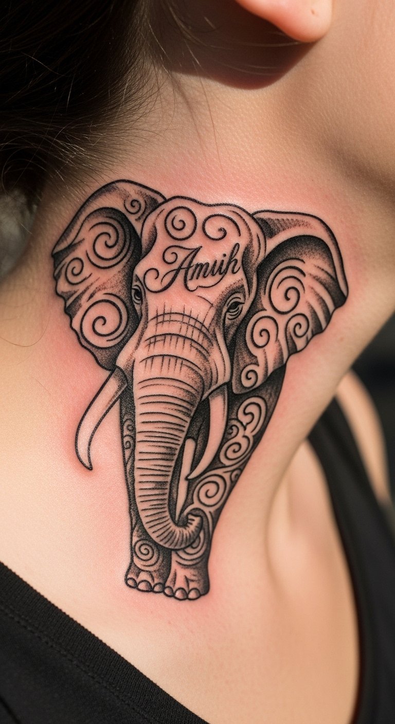 Make it yours with a personalized elephant on your neck, adding a name for touch. It’s deeply meaningful. Jot down custom elements on paper as DIY. This step personalizes the plan. Budget for add-ons at 1-3 million VND. Spot it for discreet wear. Incorporate family names for bonds. This design highlights your story. Tailor sessions accordingly. Use sketches for clear talks. Keep it affordable with tweaks. Test areas simply.