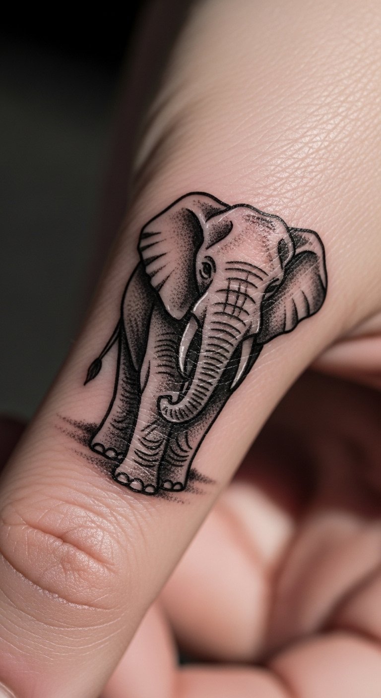 Black and grey elephants on your finger offer subtle elegance. They’re understated yet powerful. Draw tiny versions on paper for DIY. It refines the look. Go for finger art at under 500,000 VND. Position for ring compatibility. Add shades for depth. This design symbolizes quiet wisdom. Fast sessions suit it. Use drawings for precision. Keep costs minimal. Preview with ink pens.