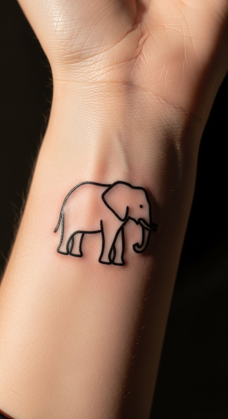 1. Minimalist Elephant Outline on the Wrist