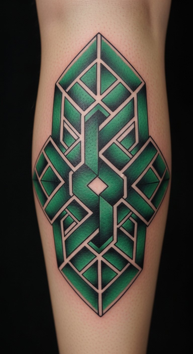 Geometric emerald patterns offer a modern edge. Use a ruler and markers to sketch grids at home. Try your thigh for a hidden spot. Simple shapes run about $50 total. Check community boards for deals on artists. Create a stencil with printer paper for practice. Opt for straight lines to cut costs. Wear loose clothes over it for protection. Mix in triangles for a unique twist. Plan for a one-hour sit. Use band-aids from your kit for care. See how it adds structure to your look.