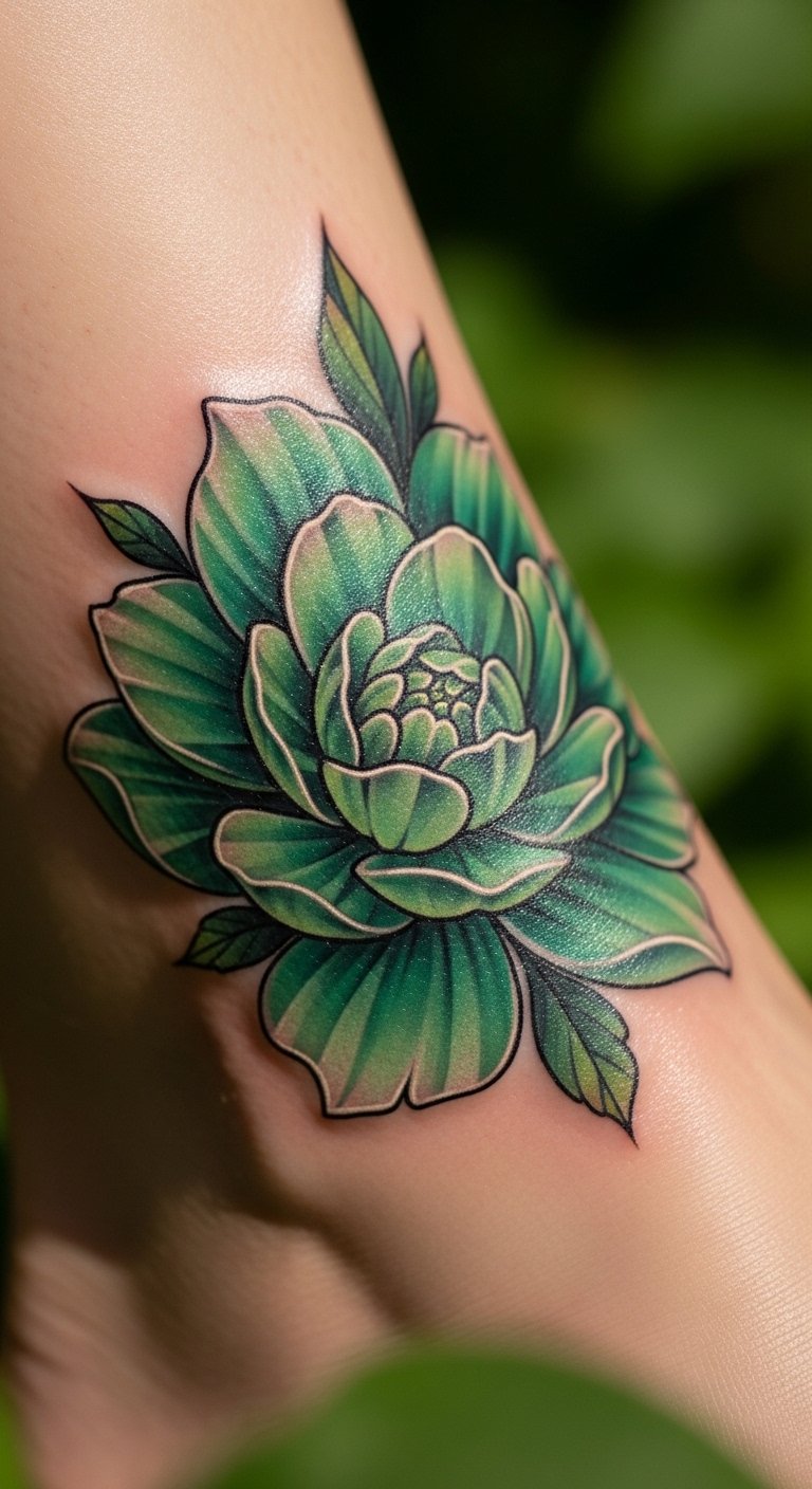An emerald flower bloom tattoo sparks joy. Sketch petals on cardstock for a test. Choose your foot for a playful spot. Bloom designs start at $45. Look online for beginner artists. Use fabric paints to mimic it on cloth. Go for three petals to save ink. Protect with socks during healing. Include a stem for added meaning. Fit it into a quick visit. Dab with olive oil from your kitchen. Watch it brighten your step.