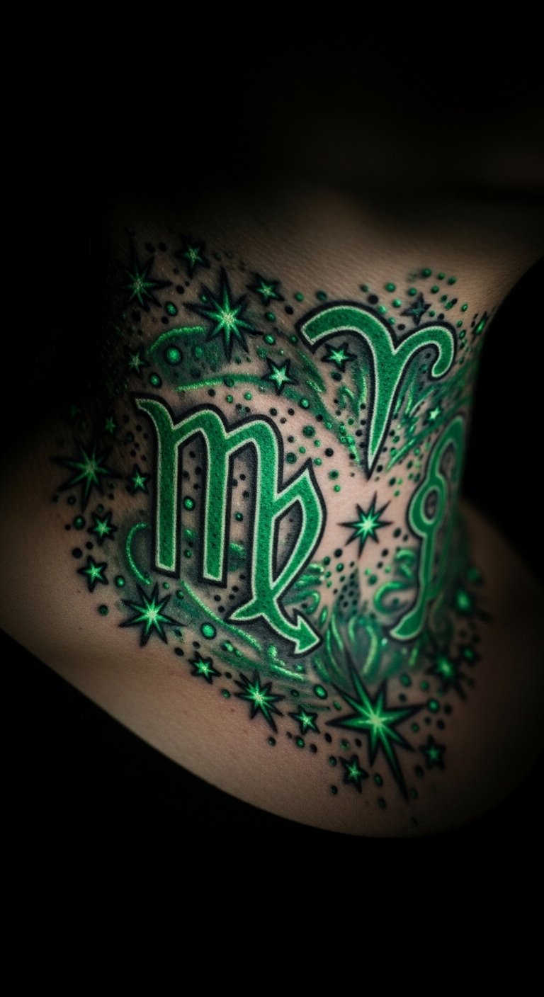 An emerald zodiac sign tattoo connects you to the stars. Draw your sign on a star chart. Place on your neck for visibility. Sign ink costs $50. Search astrology groups for pros. Use constellation stickers for tests. Opt for one sign only. Hide under collars initially. Add planets for depth. Fit into a quick slot. Care with everyday lotion. Align with your fate.
