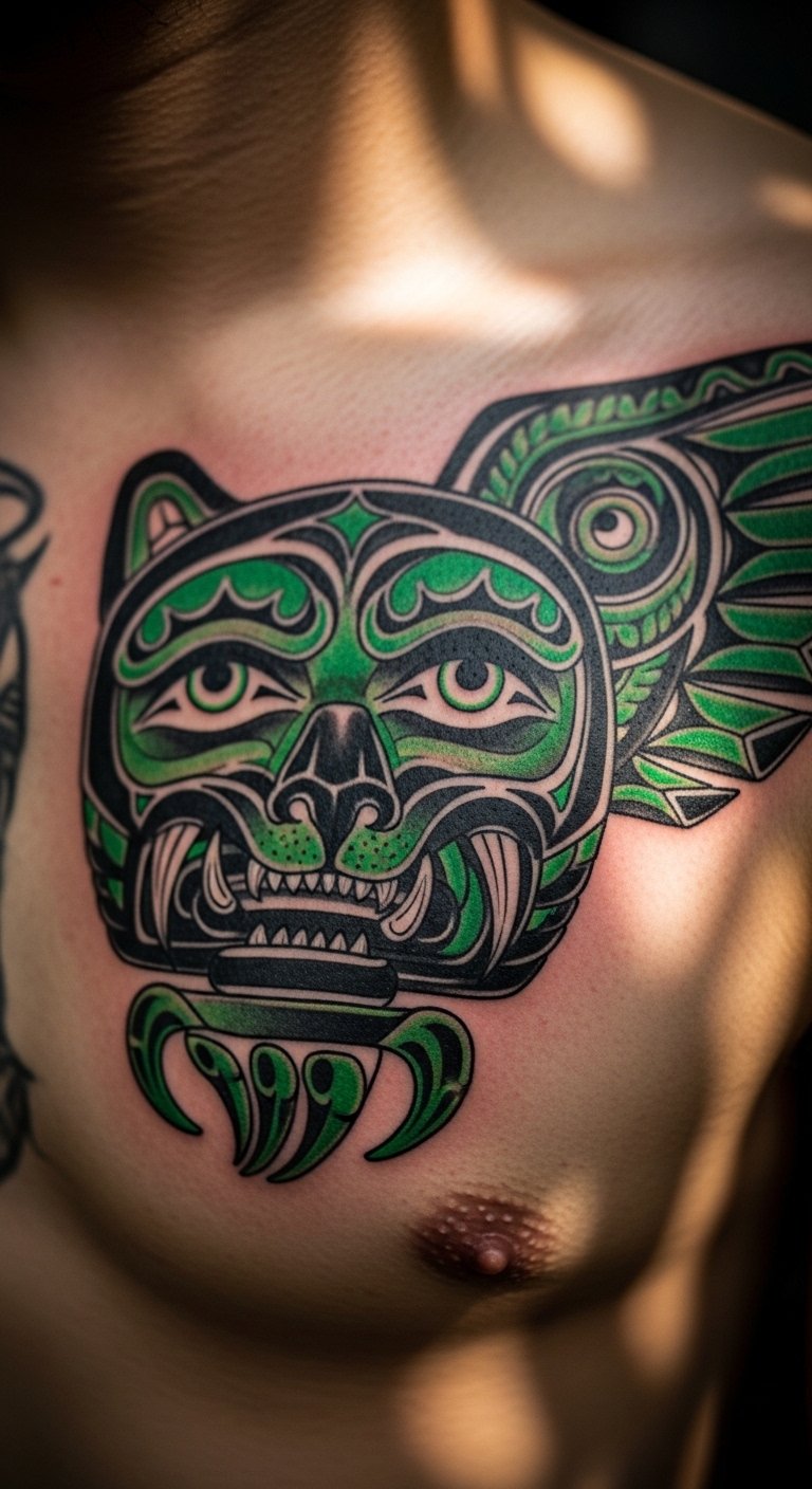 An emerald animal totem tattoo empowers you. Outline an animal on fabric. Position on your chest for strength. Totem tattoos are $70. Find wildlife-inspired artists. Use animal stamps for practice. Choose one creature. Cover during recovery. Include eyes for spirit. Divide into sessions. Heal with herbal teas. Channel its energy.