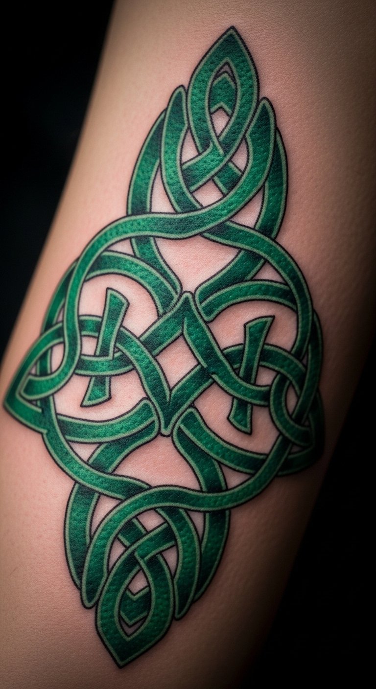 An emerald Celtic knot tattoo ties history. Knot strings together. Place on your arm. Knots are $60. Look for heritage artists. Practice with ropes. Simplify the loops. Bandage carefully. Weave in symbols. Book accordingly. Use natural remedies. Knot your story.
