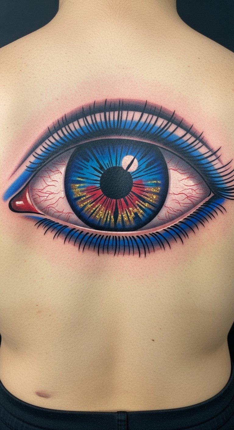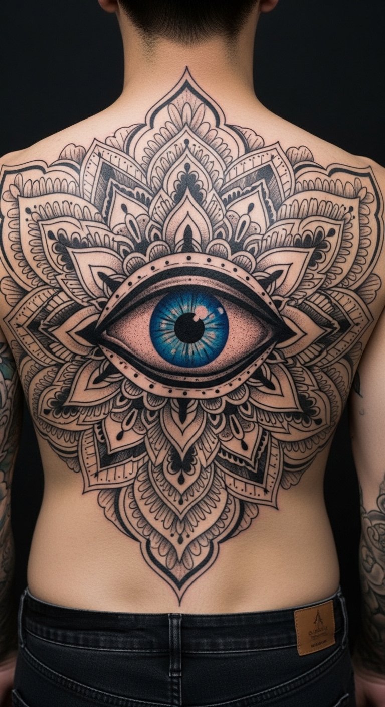 A multi-color evil eye on the back covers more ground for all-around good vibes. Use colors like blue for protection and red for energy to create a balanced shield. Place it on your back for a private spot that feels empowering during quiet moments. Find budget artists through social media groups or apps that offer discounts. Experiment at home with washable markers to sketch combinations before deciding. Add it to your self-care routine, like checking it in the mirror for a quick energy reset. Keep the design moderate to avoid high fees, around $80 for basics. This tattoo lets you mix meanings, making it a versatile pick for daily positivity.