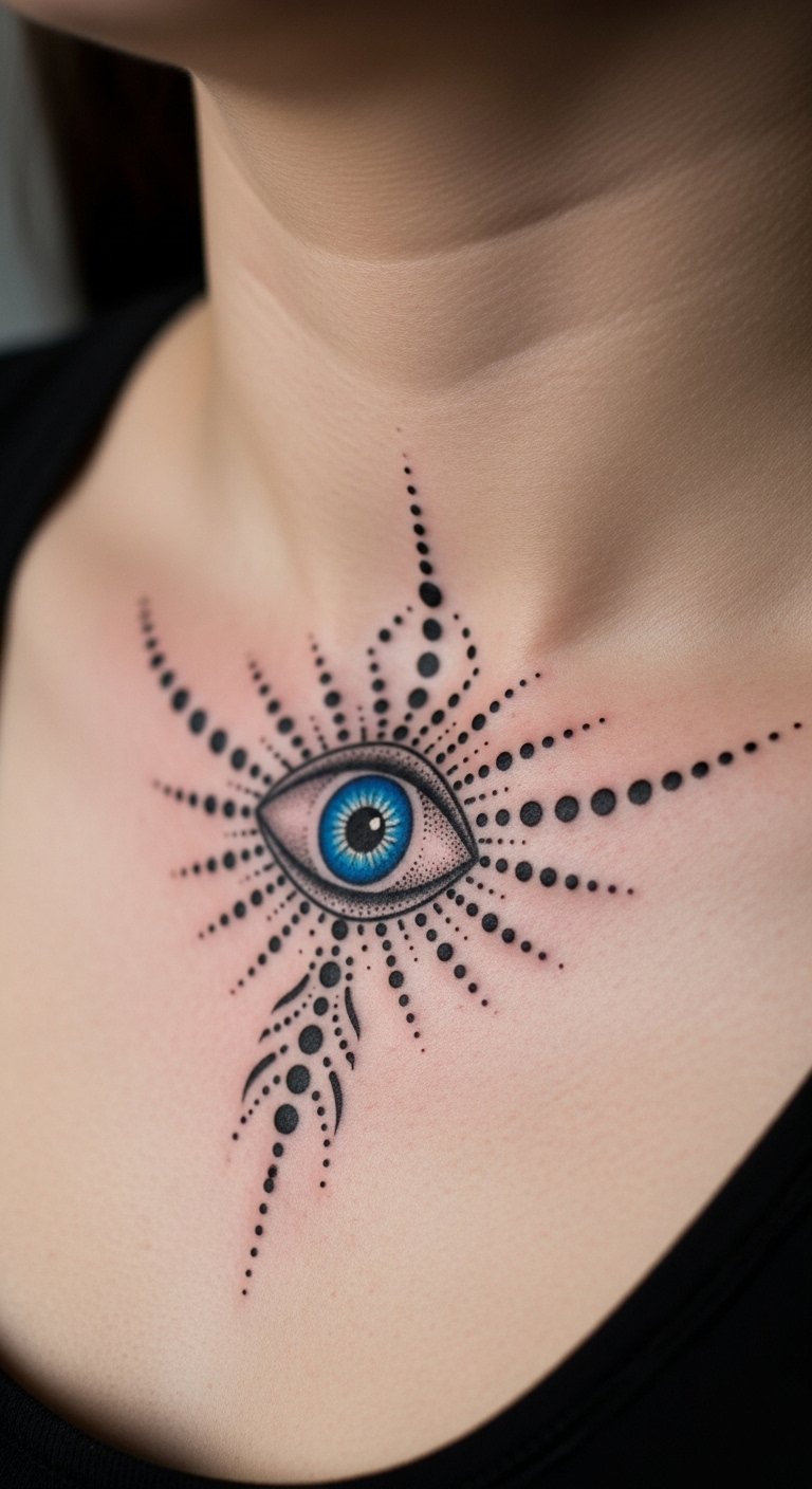 Evil eye with dots on the collarbone adds a dotted layer to your protection. Dots symbolize unity, enhancing the overall shield. Site it on the collarbone for elegance. Find dot designs in affordable apps. Test with dot stickers for ease. Use it for quick energy checks. Aim for dotted precision at $40. It dots your defenses.