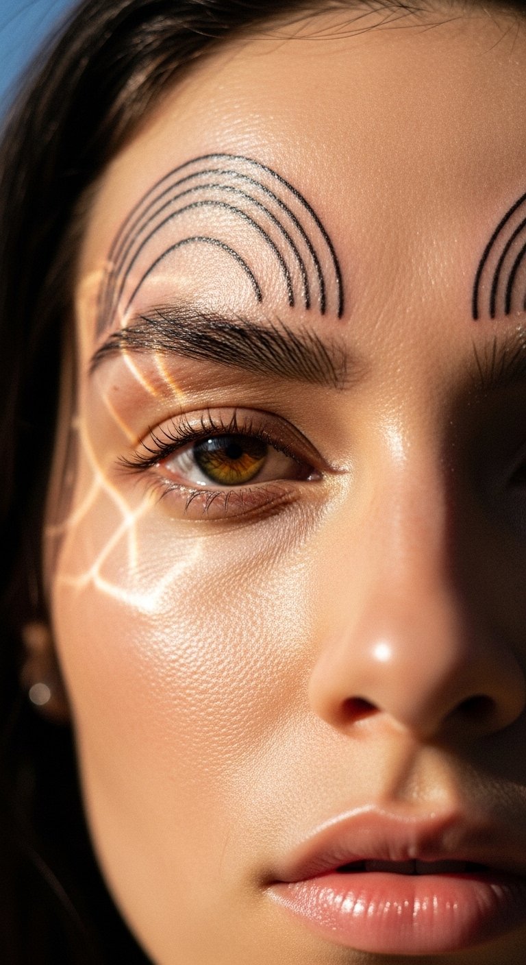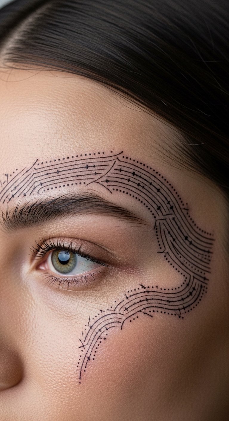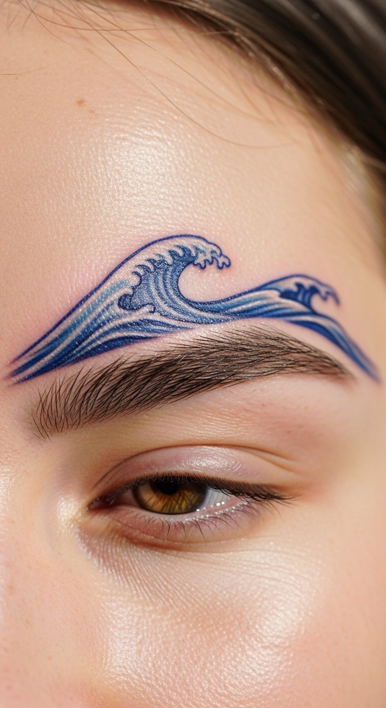 A brow wave accent tattoo waves above. It adds curve. Decide on wave accents that flow. Wave paper edges to begin. This tests motion. For cost-effective ways, create waves in free editors. Use them. Seek wave artists locally. DIY example: Wave a string above your brow temporarily. See the accent. Choose gentle waves for budgets. This design enhances brows. Pair with wavy hair. Use affordable creams for care. They maintain curves. Clean with ease. It will accent your day. Experiment in waves.