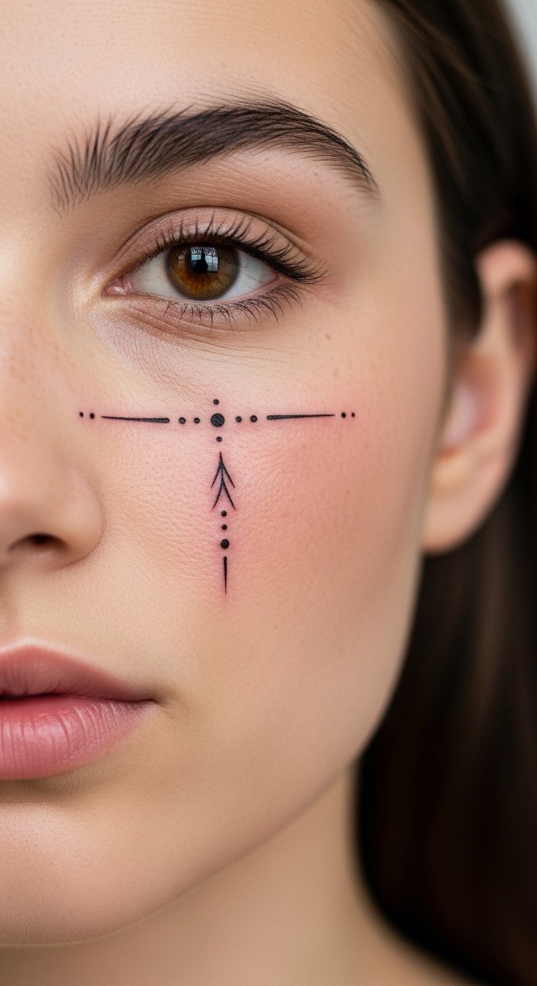 A cheek dot and line combo tattoo mixes elements. It creates balance. Pick combinations that tell a tale. Start with dot-line drawings on paper. This builds the concept. For thrifty ideas, combine free dot and line tools online. Blend them. Visit local fairs for artist meets. DIY example: Use dots and lines from markers on your cheek temporarily. Test the mix. Go for few elements to save money. This design adds interest. Match with patterns in clothes. Use basic creams for healing. They keep it clear. Clean daily with ease. You’ll appreciate the simplicity. Experiment in photos.