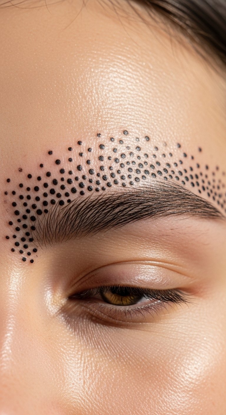 A brow dot cluster tattoo clusters points. It builds intensity. Select cluster sizes that fit. Dot paper with markers to start. This tests grouping. For saving, use dot stickers from home supplies. Arrange them. Find budget sessions online. DIY example: Place dot stickers above your brow and tweak. Check the cluster. Keep it tight for affordability. This design focuses attention. Match with bold brows. Apply store salves for healing. They maintain dots. Clean regularly. You’ll see the impact. Experiment in selfies.