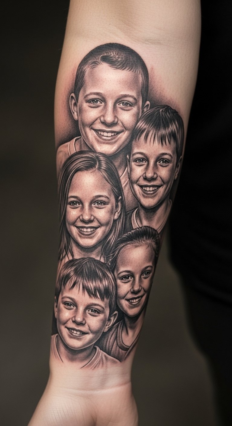 Go realistic with a family portrait. Edit a photo at home for reference. Try your forearm for display. Use shades wisely. Practice with photos. This portrait captures moments. It’s a vivid option.