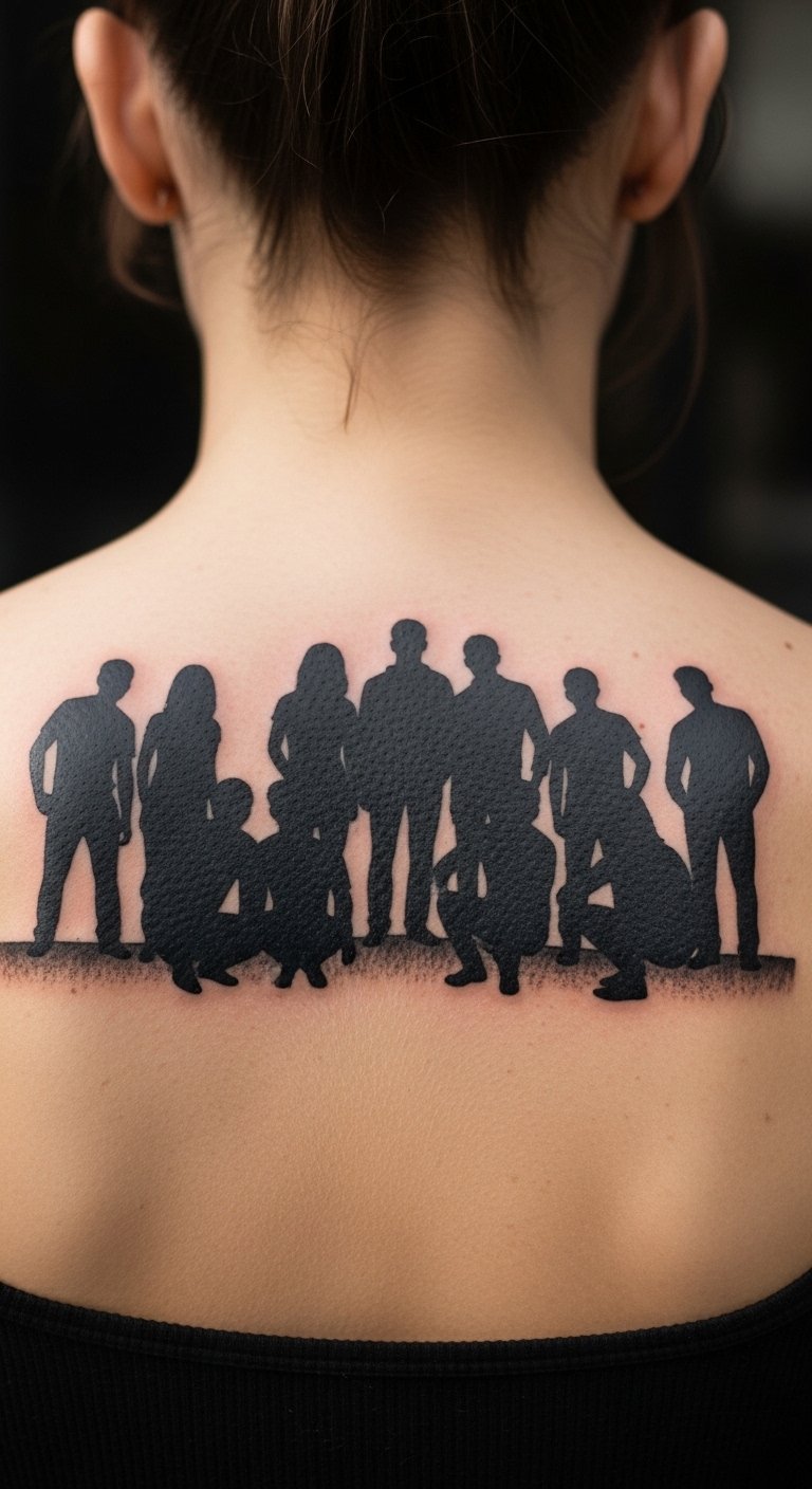 Go for clean lines with a silhouette of your family group. Snap a photo of everyone together and trace it yourself using a free app on your phone. This helps plan without extra fees. Place it on your ankle for a subtle look that doesn’t overwhelm. Choose black ink to keep prices down compared to detailed colors. For a DIY feel, practice the outline on paper with a pen. Add a small twist, like linking the figures, to make it unique. This style fits anyone seeking something simple yet powerful. It’s an affordable option that highlights togetherness. Just ensure the design matches your daily life for easy maintenance.