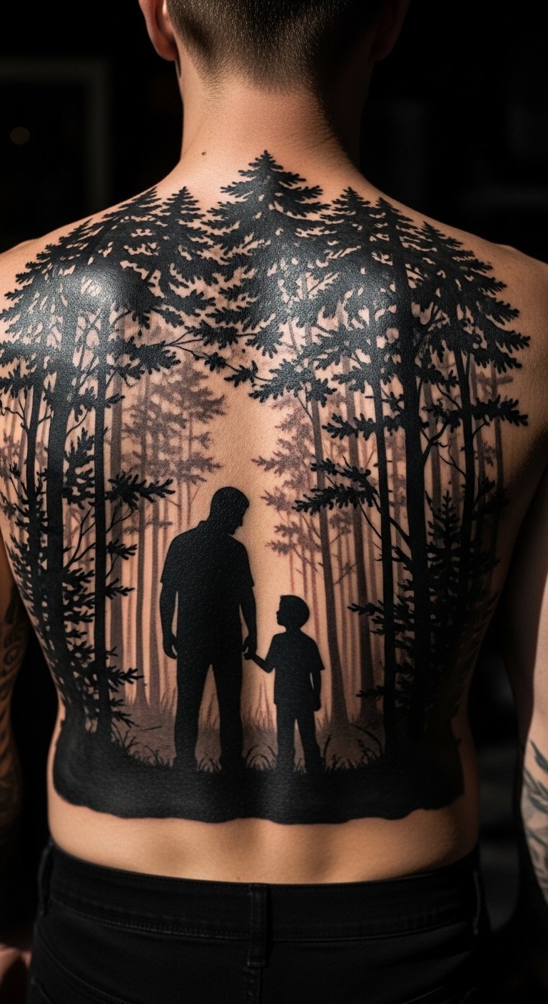 Forest scenes add a natural feel. Sketch trees and figures on paper at your desk. Use free apps for digital tweaks. This keeps prep costs low. Go for a simple outline to stay under $100. Put it on your shoulder for balance. Stick to black ink for savings. Add leaves from outdoor photos you take. It makes the design unique without help. Healing is easy with home remedies. Share your sketch with the artist for adjustments. This style captures outdoor bonds. Start small to test the waters. It’s a practical way to go green with ink.