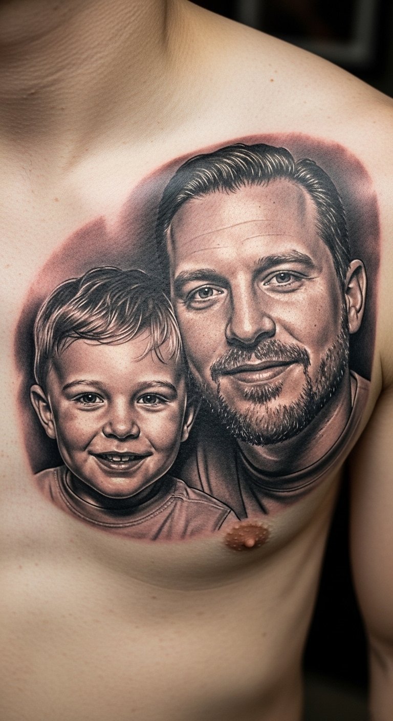 Portraits make tattoos lifelike. Take a clear photo of you and your son. Use it as a base for your design. This saves on professional help. Opt for a small version to keep it under $200. Position it on your arm for daily reminders. Focus on key features in your sketch. Add shades with a pencil at home. Healing requires gentle care, like lotion from your cabinet. Compare artists’ portfolios online for the best fit. This tribute feels real and personal. Start with a practice drawing. It’s a simple way to preserve faces.