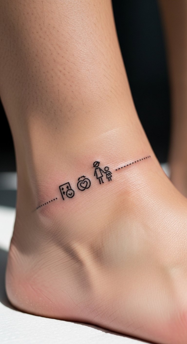 Ankle tattoos stay discreet. Draw small icons on paper. This step is free and fun. Keep it under $50 for simplicity. Spot it low for everyday wear. Use basic lines to cut costs. Include details from photos you snap. It personalizes easily. Healing is fast with daily washes. Ask around for ideas. Subtle touches hide in plain sight. Try a fake one first. It’s a quiet nod to bonds.