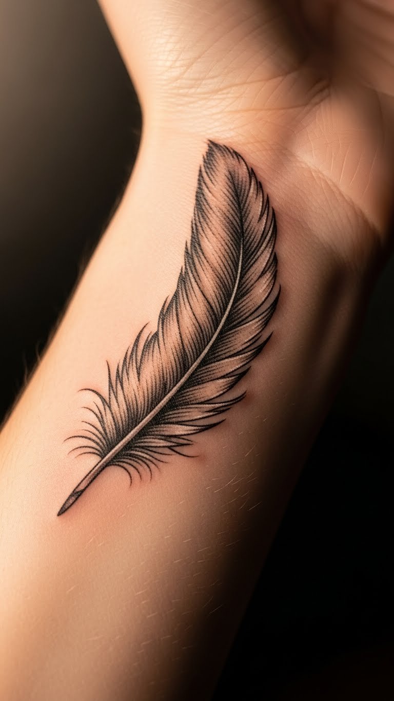 A wrist feather serves as a personal mark of growth. See it near your hand for balance. This one fits spiritual paths. Sketch wrist ideas on your arm. Use online tips for accuracy. Pick a budget spot for ink. Place it on your wrist for meaning. Care with simple steps. Connect to reflection time. Bold marks personalize it. Try arm bands.