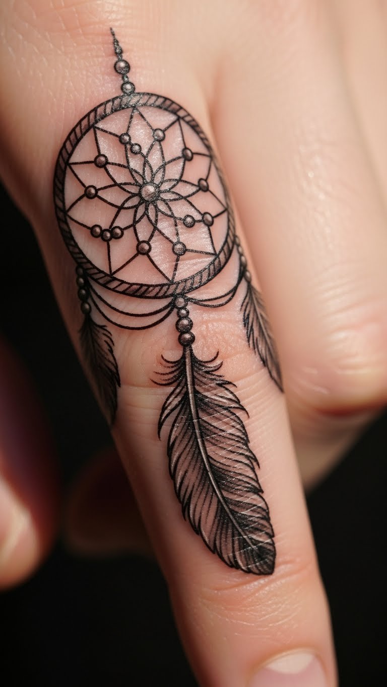 A dreamcatcher feather on your finger brings safety and dreams. See web elements woven in. This one protects your mind. Draw dreamcatcher designs simply. Find free tutorials online. Pick a budget artist. Place it on your finger for security. Care with easy methods. Pair with sleep habits. Bold catchers guard. Try yarn crafts.