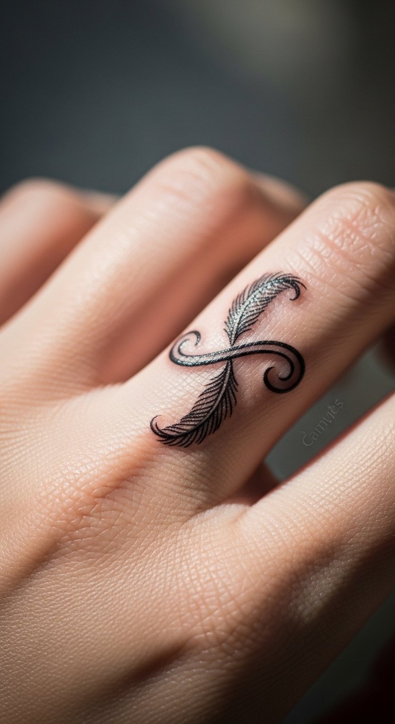 Consider an infinity loop feather for endless symbolism on your hand. The loop ties into the feather for continuity. Put it on your finger for a loop effect. Find coupon codes for local artists. Keep it small for $50. Loop sketches with a string at home. It helps map the flow. This tattoo represents ongoing stories. Try with ribbon you have. Shield with tape if needed. This makes it accessible.