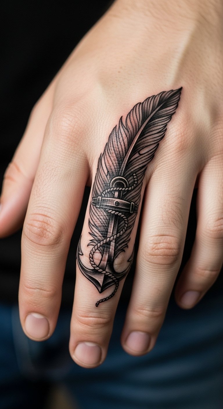 Opt for an anchor base feather on your hand for stability. Anchors hold the feather firm. Try your finger for a grounded feel. Look for nautical themes in deals. Go for base at $60. Base drawings with anchors at home. This steadies plans. The tattoo adds strength. Use boat sketches. Keep it simple. This design is reliable.