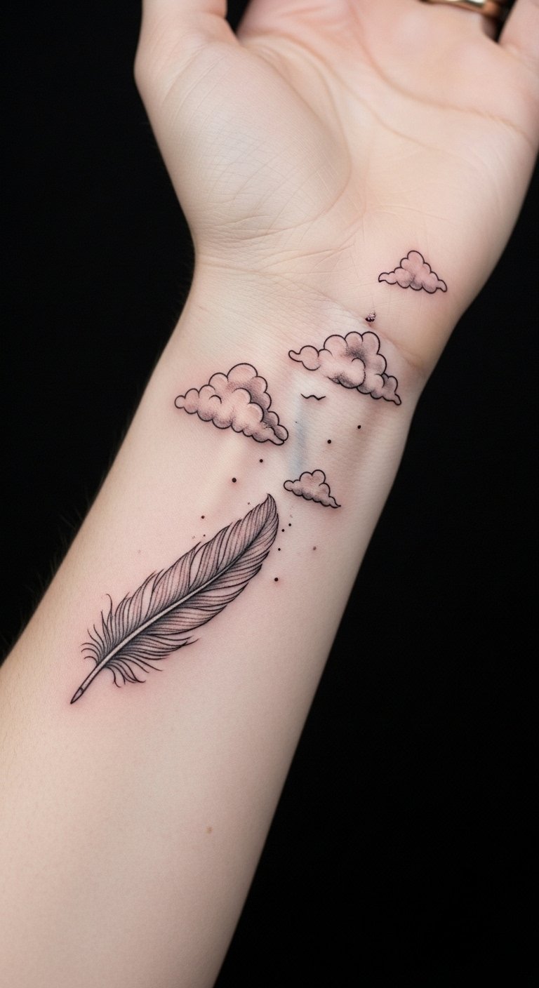 Choose a cloud drift feather for a dreamy hand tattoo. Clouds float from the feather for lightness. Try your wrist for sky vibes. Look for weather-themed offers. Go for drift at $65. Drift drawings with clouds at home. This clouds your creativity. The tattoo adds airiness. Practice with cotton. Keep it light. This is a floating choice.