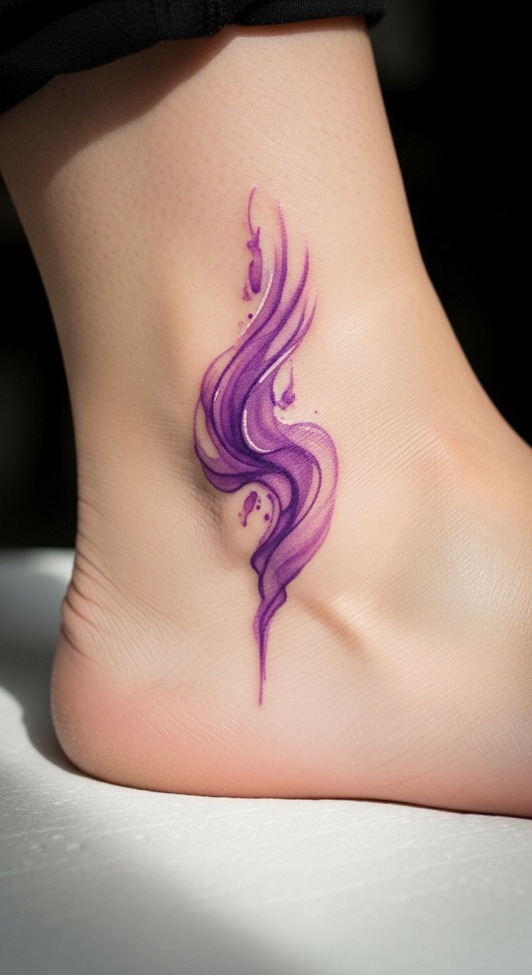 Watercolor violet tattoos add a soft, artistic feel. This method mimics paint for a dreamy look. Grab watercolors from a dollar store to test at home. Blend colors on paper to match your vision. Opt for a smaller area, such as your foot, to keep costs down. Free tutorials online guide your sketches. Layer lightly for depth, using brushes you might have. These designs bring color without complexity. Practice on fabric scraps before deciding. Choose spots that show off the flow easily.