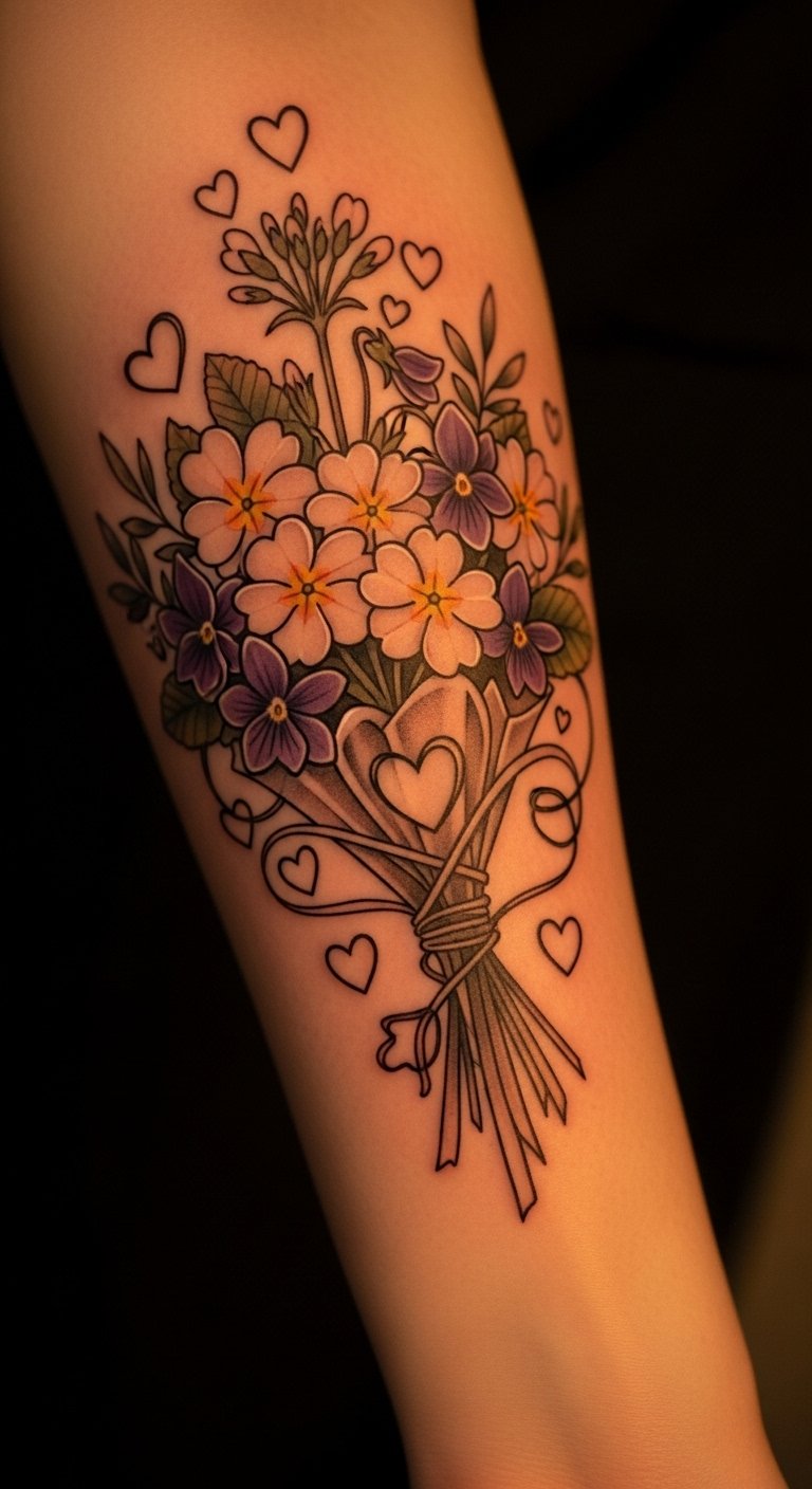 Bouquet Tattoo Combining February Flowers