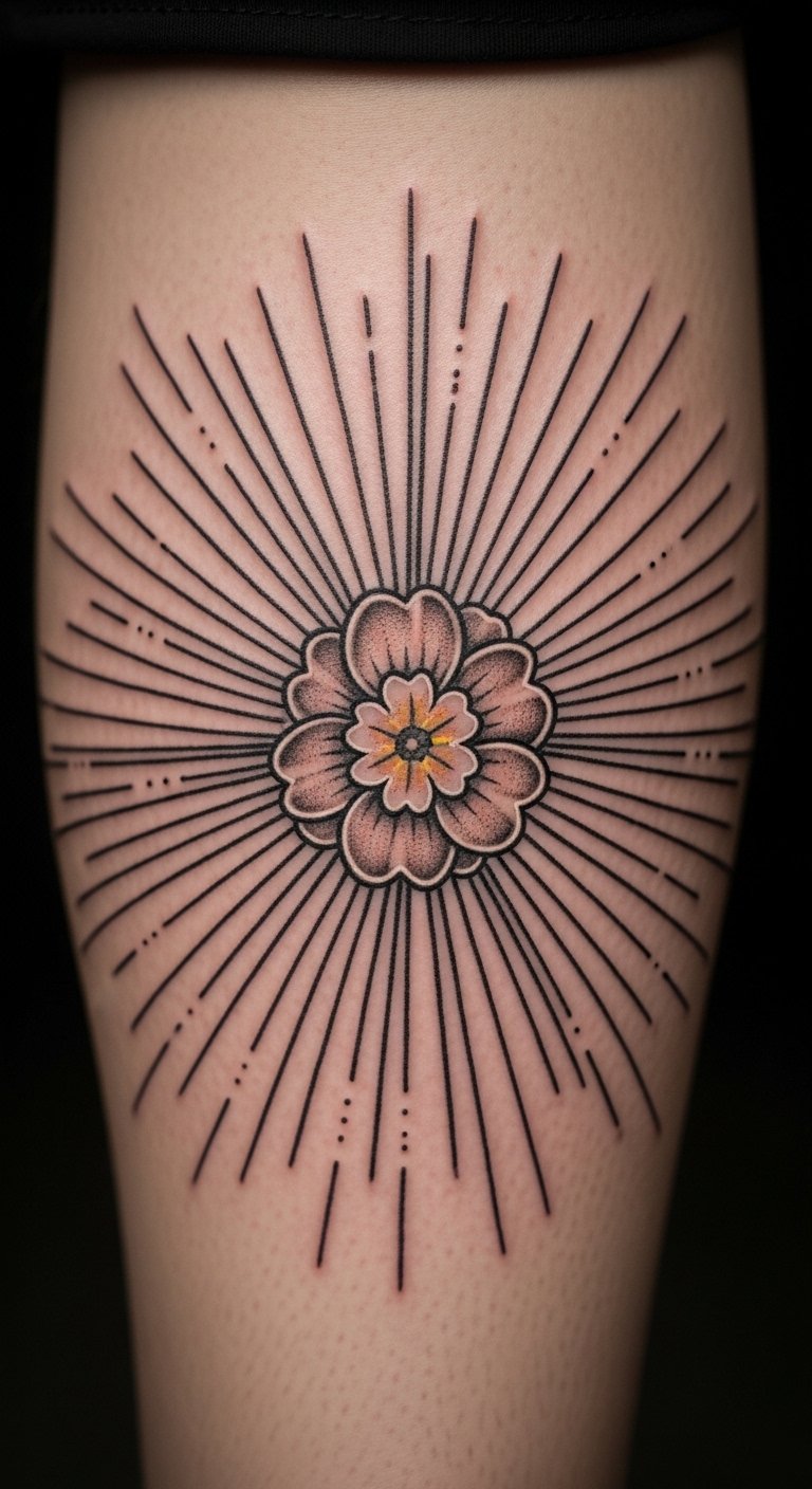 Primrose bursts create dynamic patterns. Arrange petals outward in sketches. This adds flair without complexity. Go for leg to manage size costs. Online ideas spark creativity. Practice with radial drawings. These tattoos energize your look.