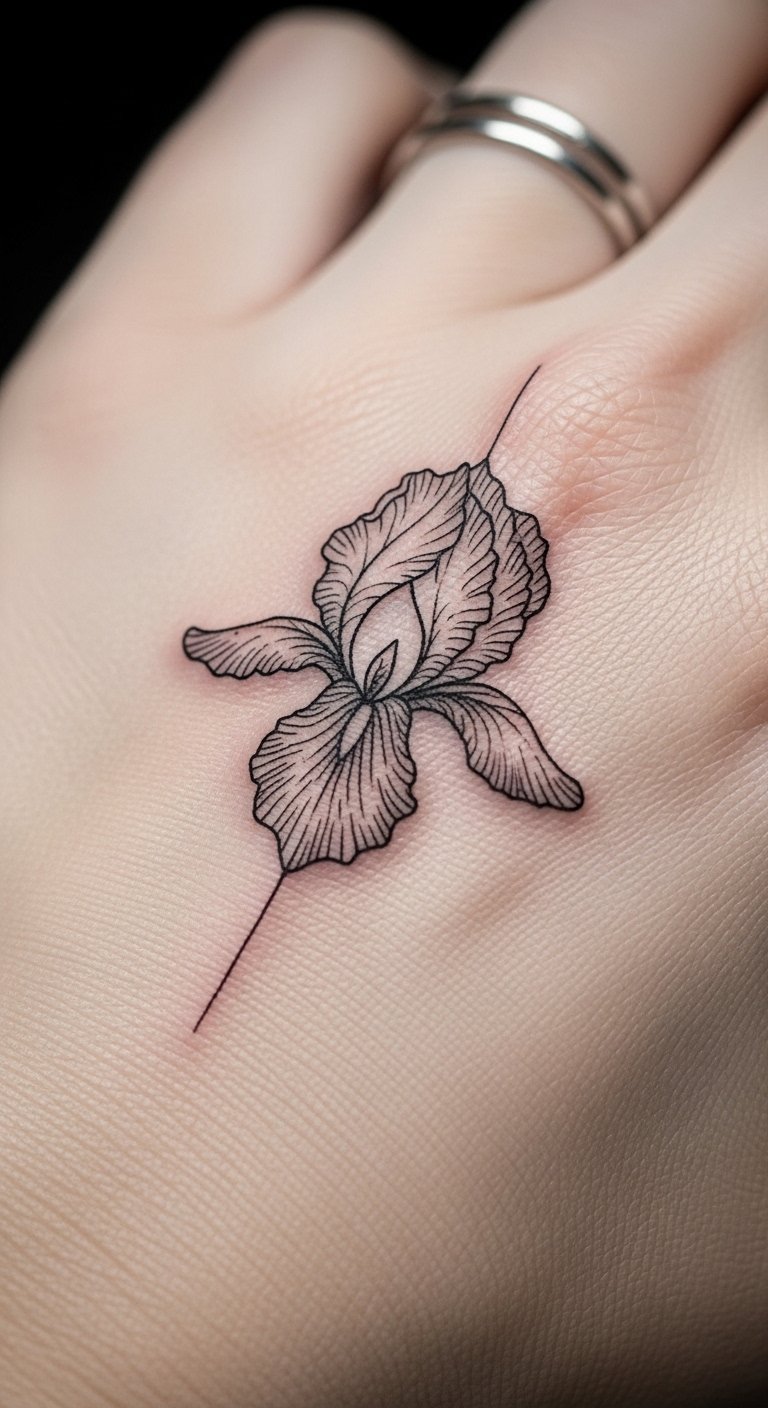 Fine-line iris tattoos offer precision. Focus on thin strokes in drawings. This style is cost-effective. Pick hand for quick access. Apps refine lines digitally. Practice with thin markers. These tattoos age with grace.