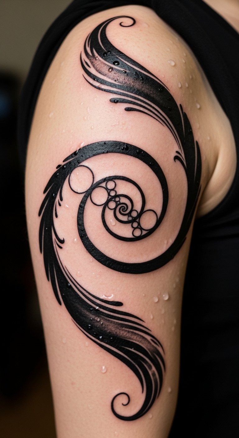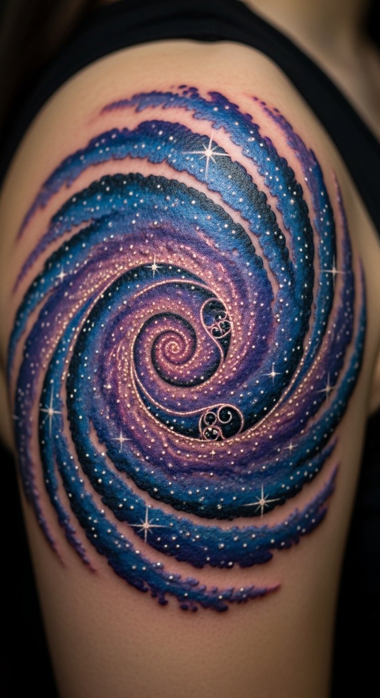 Create a galaxy of spirals on your shoulder. This tattoo sparks cosmic vibes. Begin with star maps at home. Draw swirls on a notebook. Keep it fun. Search for shoulder deals, like $90. Use glow stickers to preview. They’re budget buys. Book your spot. The session lasts 45 minutes. Choose core elements for savings. Your shoulder galaxy will inspire exploration. Add planets with free apps. This makes it yours without extra cost. Reach for the stars affordably.