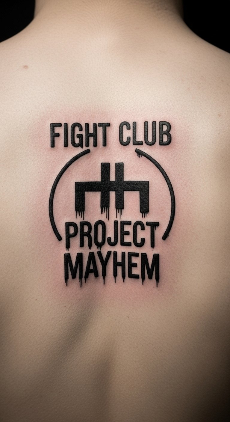 The Project Mayhem logo tattoo brings group vibes to your skin. Use straight lines for a striking effect. Sketch ideas on your phone app before visiting a shop. Look for affordable artists online and book short sessions. Aim for $60 to $100 total. Spot it on your chest for a hidden gem. Practice with stick-and-poke kits at home if you’re handy—always safe first. This ink highlights unity and action. Make it your own by adding a small detail. Wear it during challenges to stay motivated.