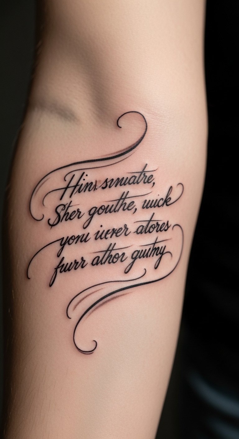 A simple script quote tattoo keeps things mysterious and personal. Choose thin fonts for elegance. Jot down options in a notebook to refine. Use free font generators for designs. Keep it small to cut costs—expect $70 or less. Place on your neck for easy cover-ups. Test with washable markers at home. It serves as a quiet reminder of rules. Bold the key parts mentally when planning. Tie it to personal goals for extra meaning.