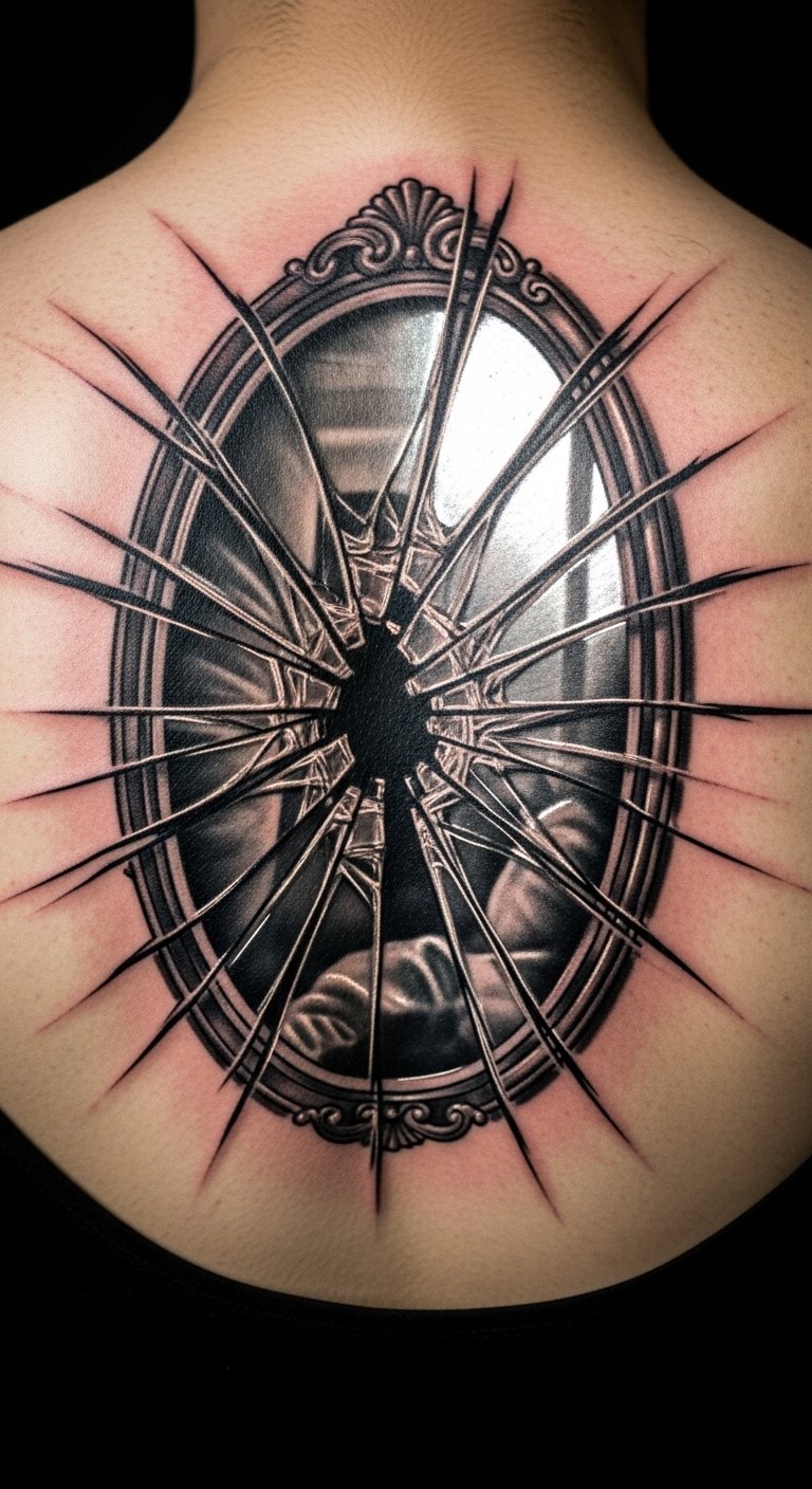 Broken mirror tattoos reflect change. Draw fractures simply. Find ideas online for free. Keep costs at $70. Place on your back for cover. Test with temporary ink. It signifies self-discovery. Add personal elements.