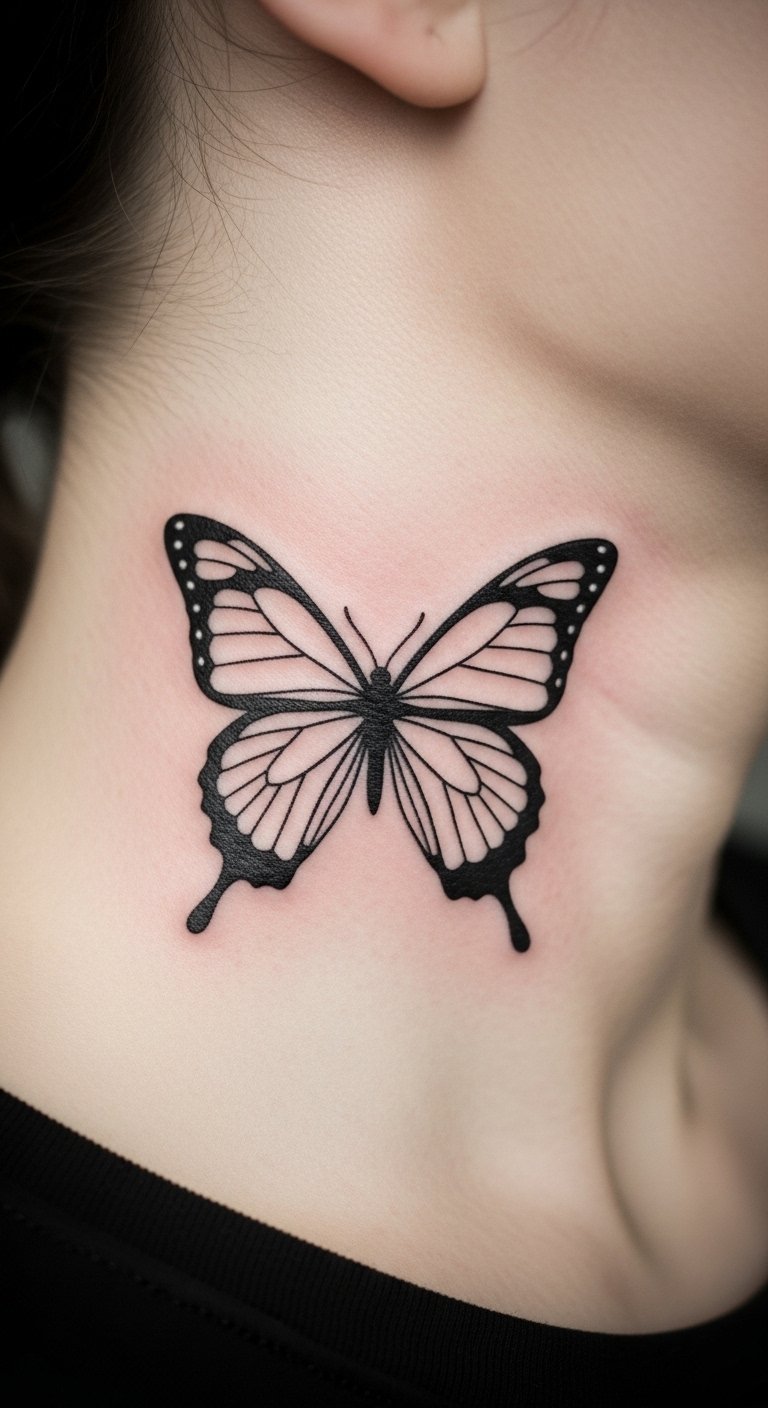 Butterfly tattoos mark change. Draw wings simply. Get free designs. Cost $60. Spot on neck. Use temporary options. It symbolizes growth. Customize colors.