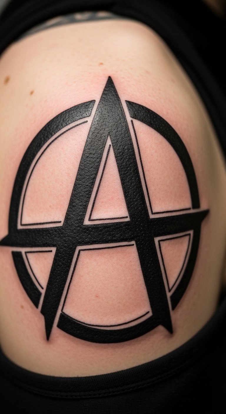 Anarchy signs challenge norms. Simple drawings work. Get free signs online. Cost around $70. Spot on shoulder. Use markers. It sparks questions. Highlight the circle.