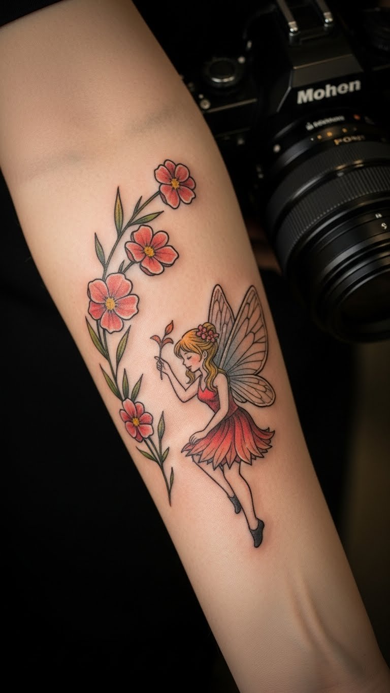 Fairies with flowers spark magic. They enchant your forearm. Sketch fairies simply. Paper is handy. Watch fairy videos. Seek whimsical artists. Ask about costs. It could be $90. Limit details. Practice with fairy tales. Books help. Include flower crowns. Position for wonder. It brings smiles. Discuss stories. Make it fun.