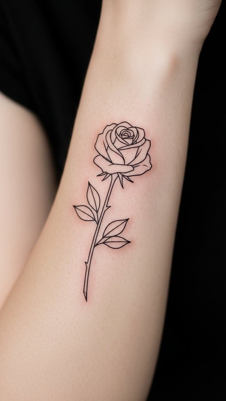 Think about a small rose that says a lot with less. A minimalist rose tattoo uses just a few lines to create a clean look. Start with a sketch on paper to see how it flows. Use free online tools for your own design tweaks. Pick a local artist who does simple work; it keeps costs low. Go for black ink to save money over colors. Add it to your forearm for easy show-off. This style fits daily wear and hides under sleeves. Try drawing it with a pen first as a DIY test. Keep the design under two inches for a quick session. You’ll love how it ages gracefully on your skin.