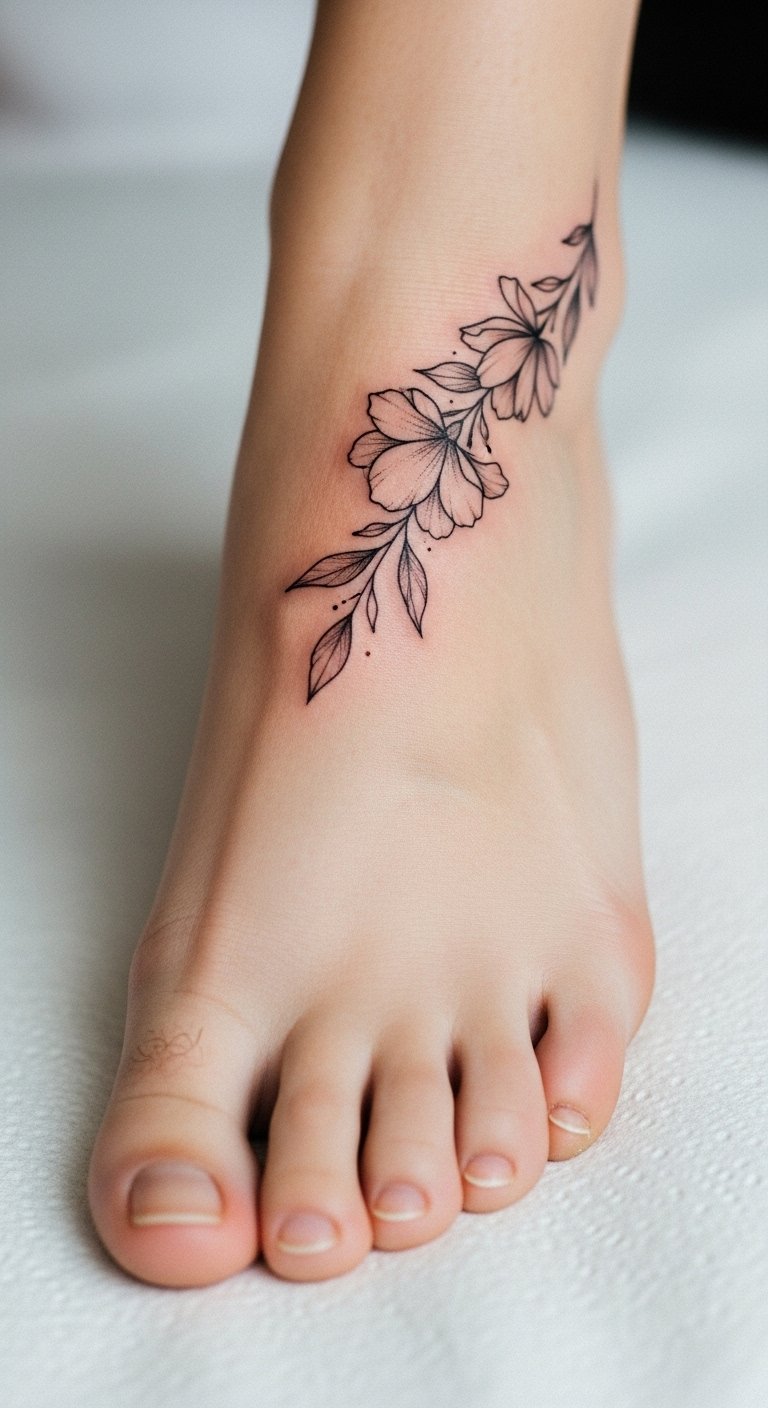 Think about a small flower on your foot for a soft look. This design fits the curve of your arch just right. Start with a temporary one from an online shop for under $5. Draw it on with henna at home for practice. Pick colors that match your shoes. Simple tools like a fine-tip pen help sketch ideas first. Go to a local artist who offers deals for first-timers. Keep it small to save on cost. This way, you get style without much pain. Try pairing it with sandals for a quick outfit win. Focus on local flowers for a personal touch.