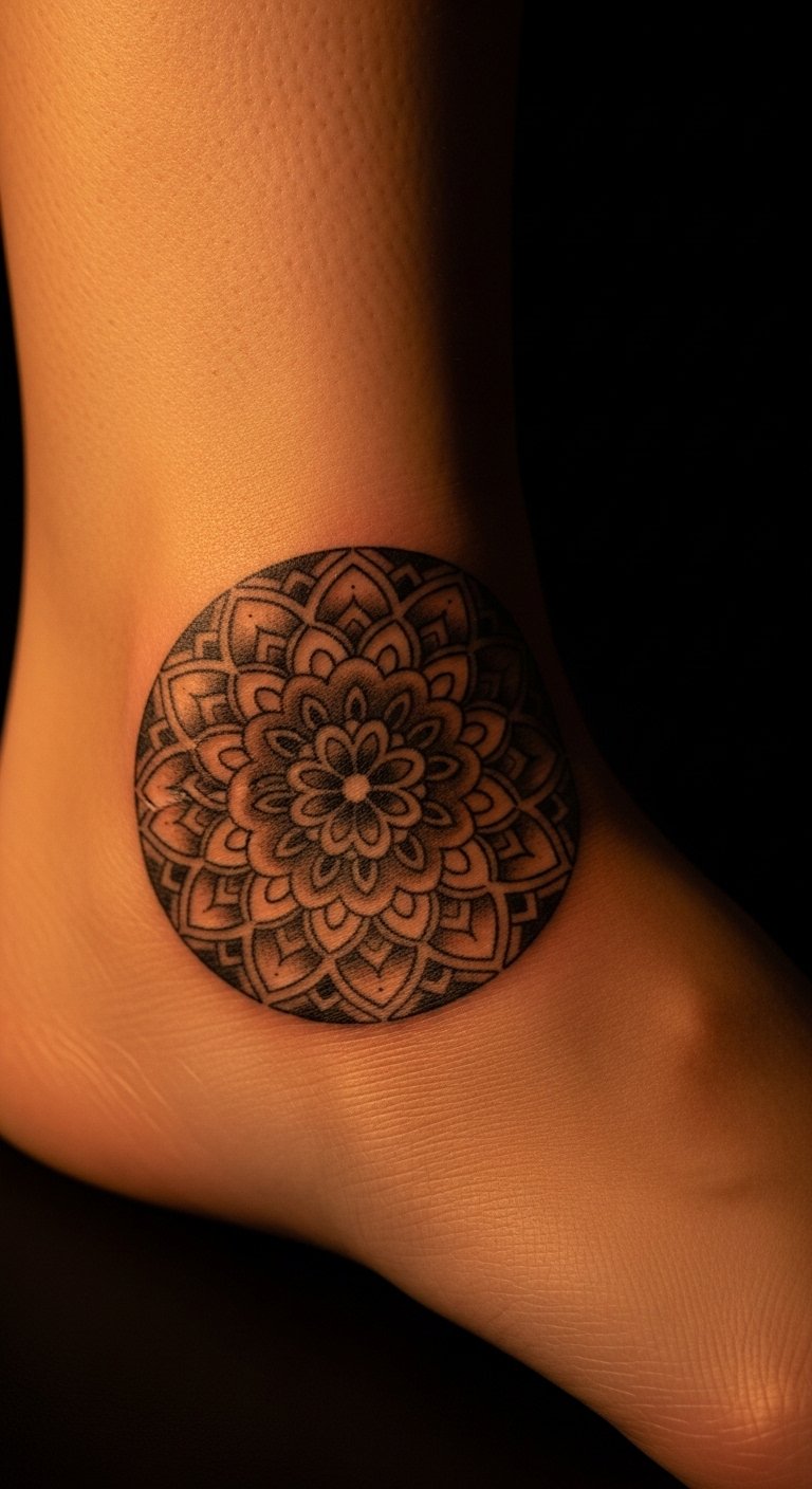 A mandala on your ankle brings balance and calm. Choose a basic design that fits the bone’s shape. Use free apps to preview it on your phone before deciding. Buy a temporary version for $10 and apply at home. Draw a simple circle with markers to test the spot. Look for artists who charge by size to keep costs low. Add colors with everyday markers if you’re DIYing. This tattoo works with jeans or dresses. Make it your own by adding a small twist, like a favorite color.