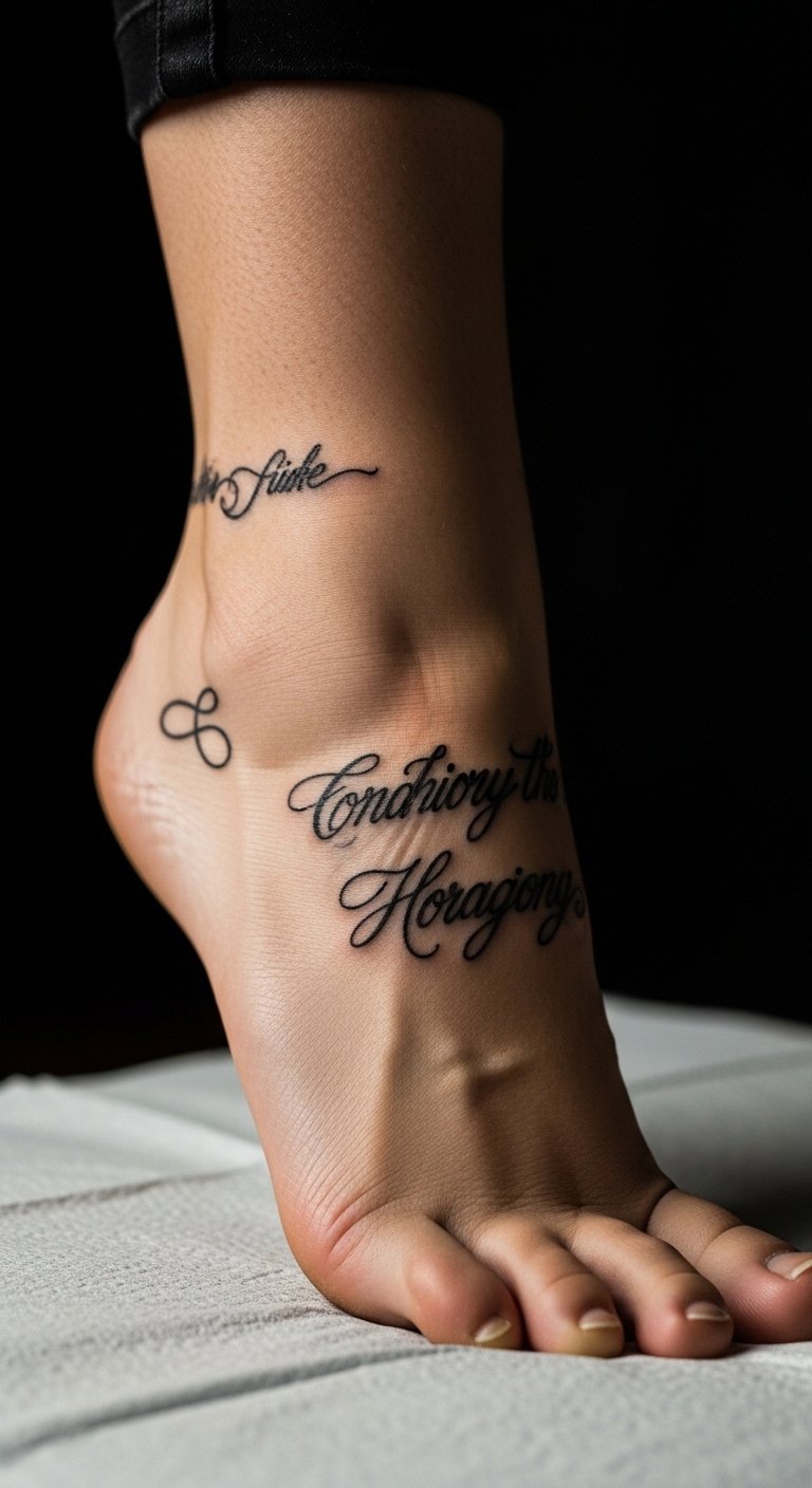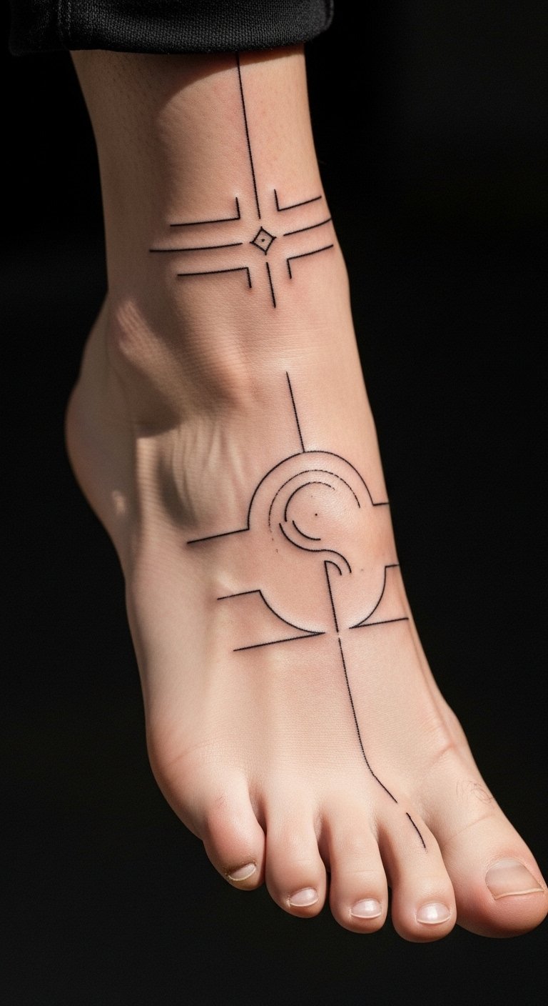 Minimalist lines make your foot look sleek. Go for one straight line across the top. Try drawing with eyeliner at home to see how it feels. Grab temporary stickers for less than $2. Search online for free templates to trace. Visit a budget studio for quick sessions. Pair with casual clothes for everyday wear. This style is easy to maintain and hides well. Add a dot or two for extra meaning.