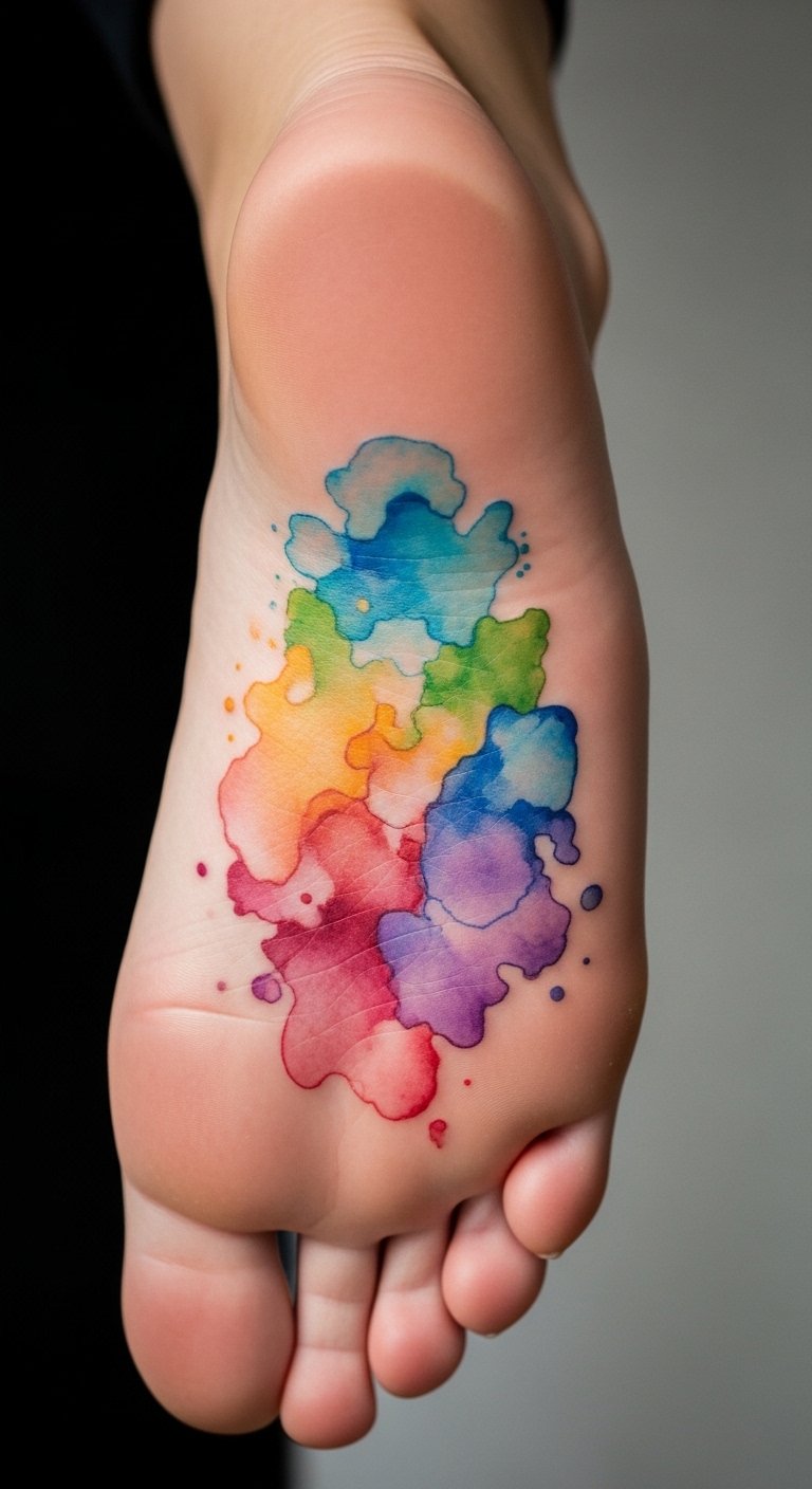 Watercolor tattoos on soles give a painted feel. Choose soft blues and pinks for a fun effect. Practice with washable markers on your foot. Buy watercolor temporary tattoos online for cheap. Use a brush and water-based paint for a DIY try. Look for artists who specialize in color without high prices. Wear open flips for display. Keep designs small to fit the area. This adds art to your step without much effort.