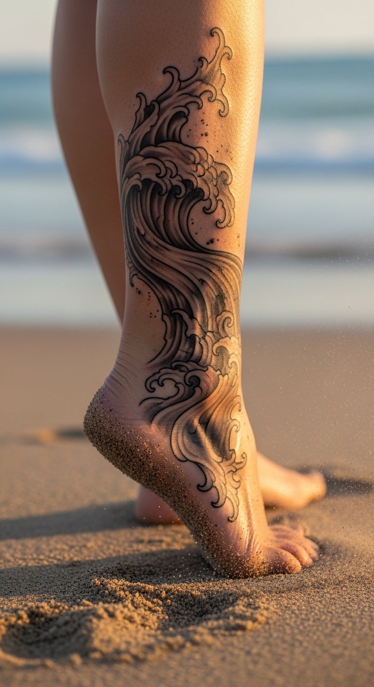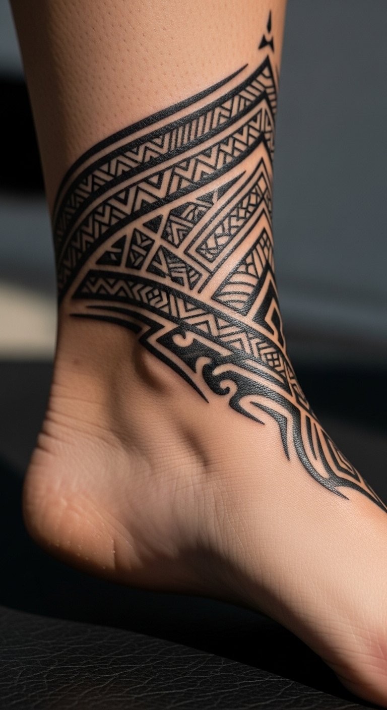 Tribal lines around ankles show cultural flair. Choose basic waves that wrap nicely. Use printable templates for home tests. Apply henna versions for under $5. Draw with a steady hand and ink pen. Seek out community artists for lower rates. Pair with ethnic clothes for events. Start small to keep it budget-friendly. This design grows with you over time.