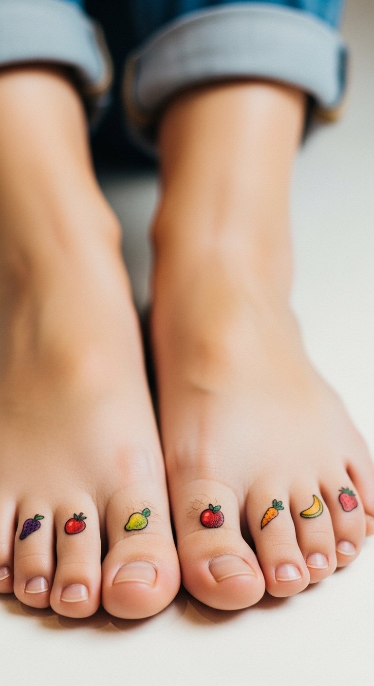Foodie symbols on toes celebrate eats. Pick a fruit or fork. Food stickers for play. Draw with food doodles. Find edible art. Pair with meals out. Keep it tasty and small.