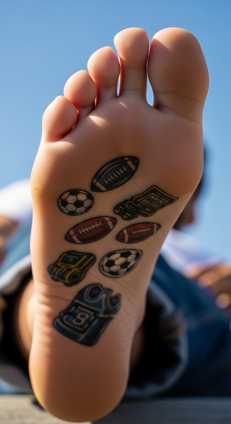 Sports emblems for feet show team spirit. Go for a ball icon. Emblem stickers quick. Sketch from sports gear. Seek game-day offers. Wear with athletic wear. Start with your favorite.
