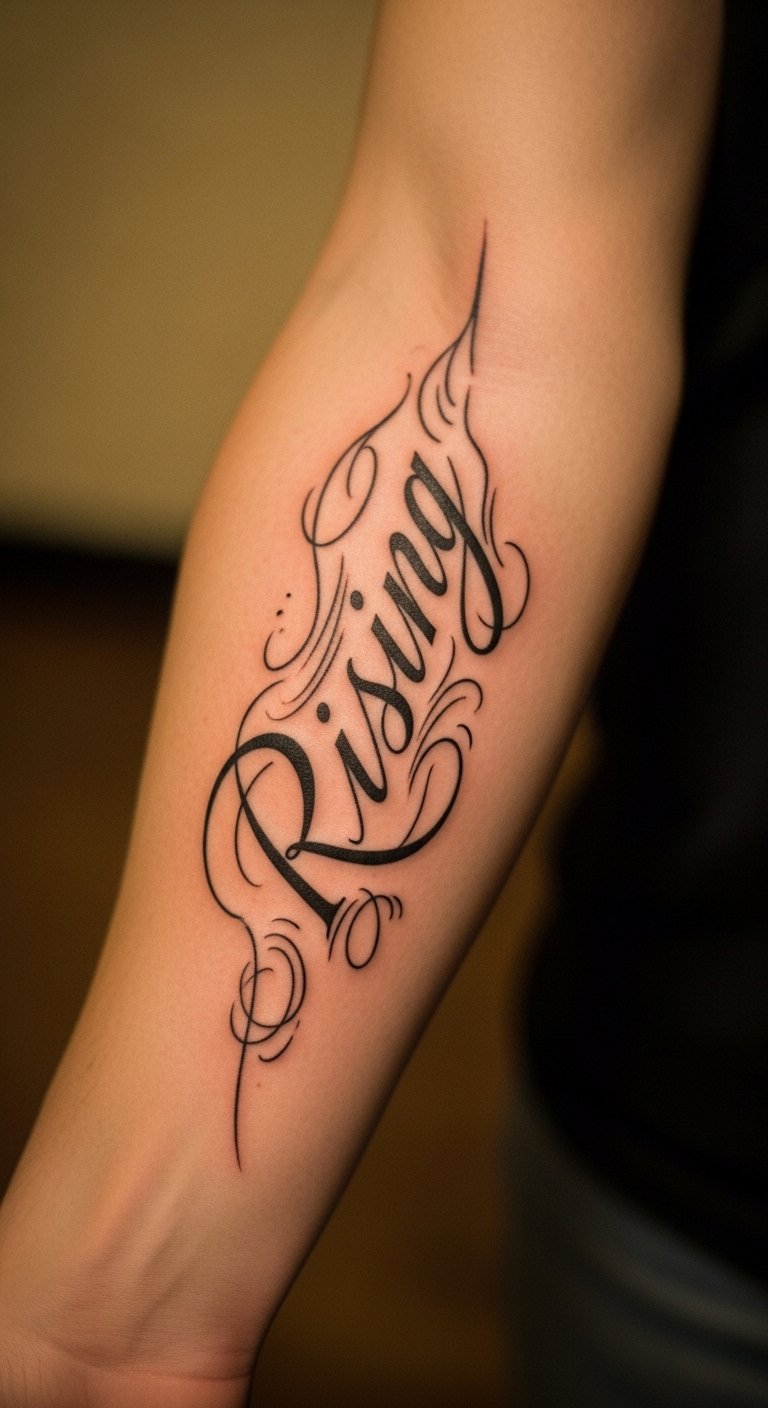 Try “Rise Above” for overcoming tough times. Choose a thin line font for budget appeal. Practice with temporary tattoos from dollar stores. Look for artists who do walk-ins at lower rates. Put it on your forearm for easy daily views. Blend in a small mountain sketch using free drawing tools. Go monochrome to keep it cheap. Book a short appointment to fit your schedule. Test with body paint from home supplies. This tattoo helps you push through obstacles with ease.