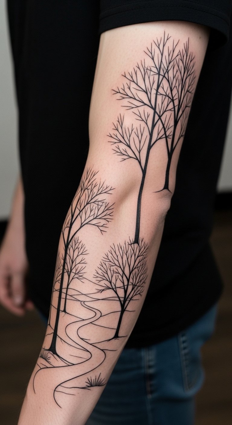 Personal journey forest tattoos map your story. See a path winding through trees. Journal your ideas to plan without expense. Studios offer these for $170. Use apps to map out the route. Add milestones like stones. Journey designs suit half-sleeves for storytelling. Heal with everyday balms. Sketch paths on maps as a start. These endure with easy care. They reflect your life on skin.
