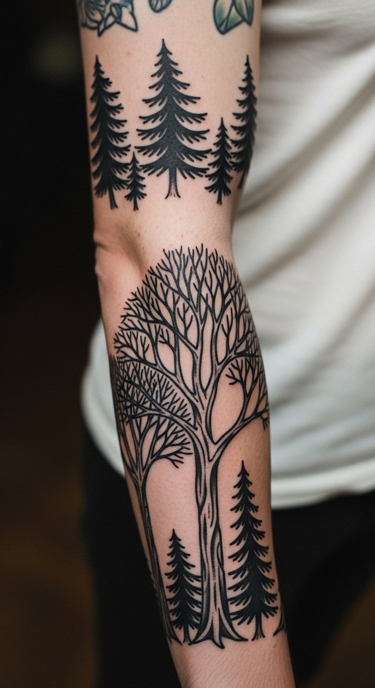 Size and placement make forest tattoos just right. Measure your arm first. Pick spots that suit your life. Studios advise for $100 consults. Use mirrors to preview. Adjust for comfort. Tips help avoid mistakes. Try string templates. They ensure a good fit. Follow for best results.
