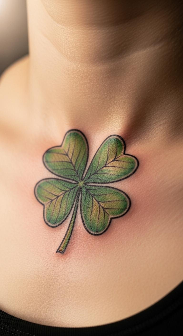 Neck line work keeps your clover sleek. Thin lines create a clean look. This spot is versatile. Draw lines on paper first. Place it on your neck base. Budget sessions at $60. Add curves if needed. Use line stencils. Work stays neat. Sessions quick at 15 minutes. It lines up your good luck.