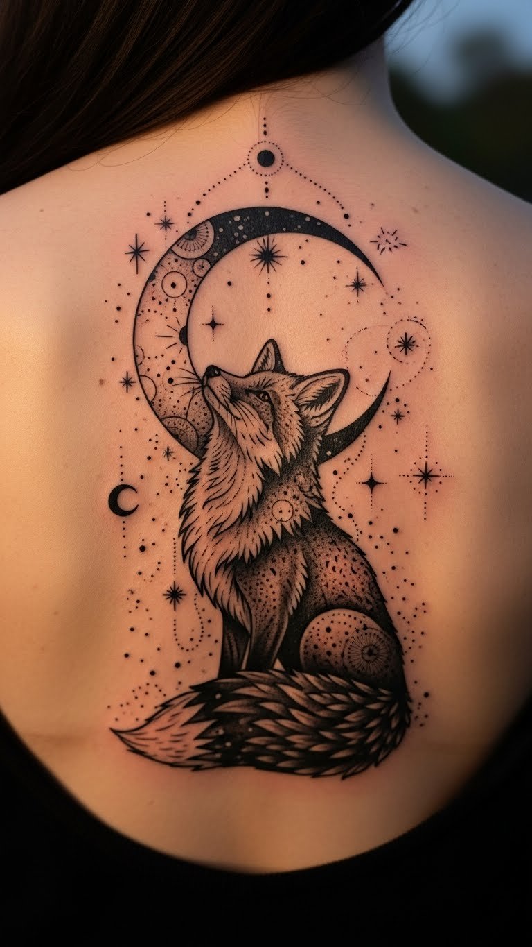 Combine a fox with a night sky for magic. The moon adds a dreamy touch. Sketch a fox beneath a simple circle on paper. Add stars with a dotting tool. Realistic DIY example: Use glow-in-the-dark stickers on your wall to visualize it first. They cost little and help with placement. Trace your drawing onto skin with temporary tattoos from the dollar store. Get it inked later, focusing on basic shades to reduce costs. This step-by-step approach makes it accessible and fun. Keep designs modest for easier budgeting.